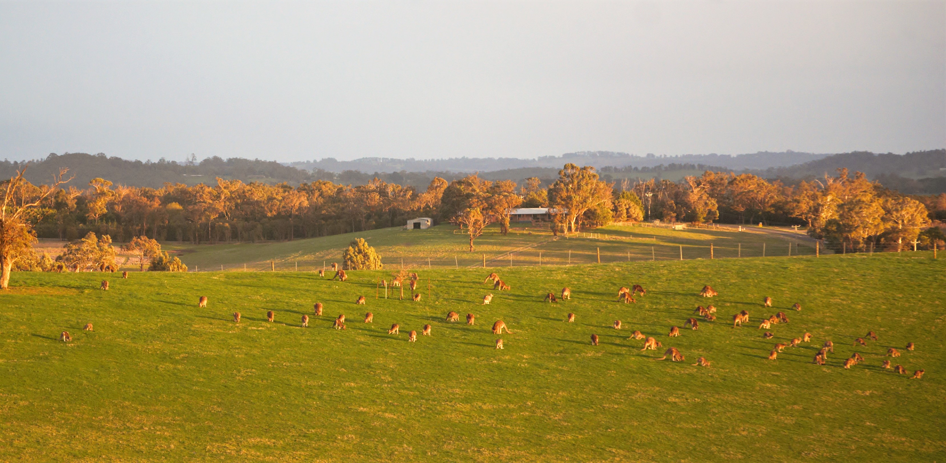Just one or two kangas in our top paddock at sunset last night. The grass must be very sweet!